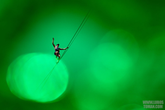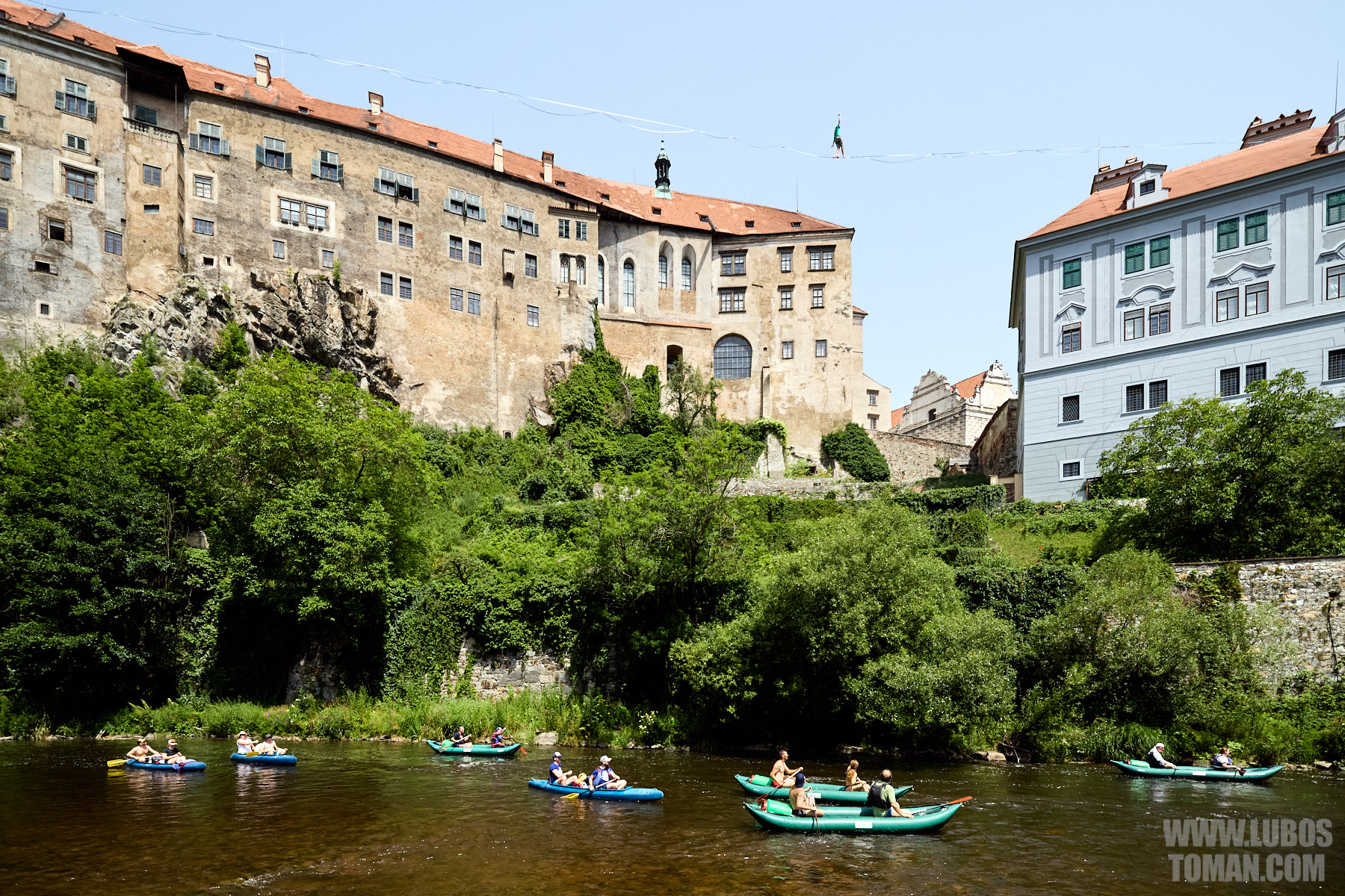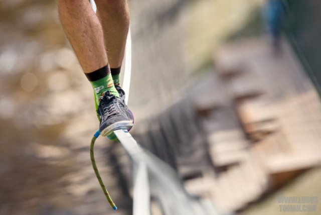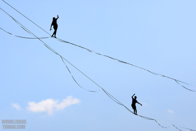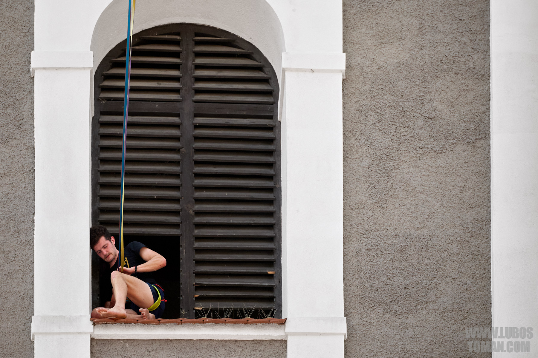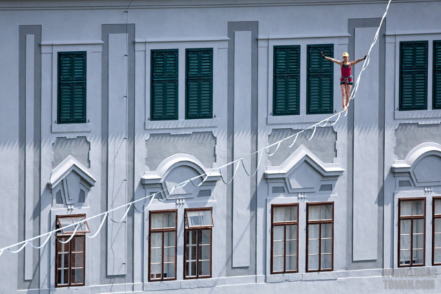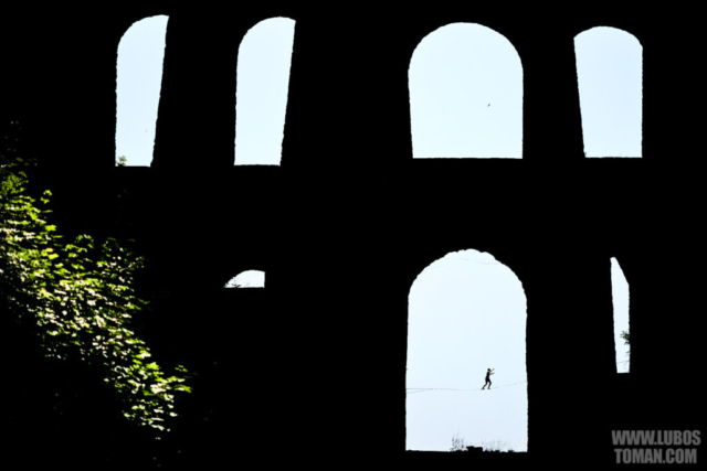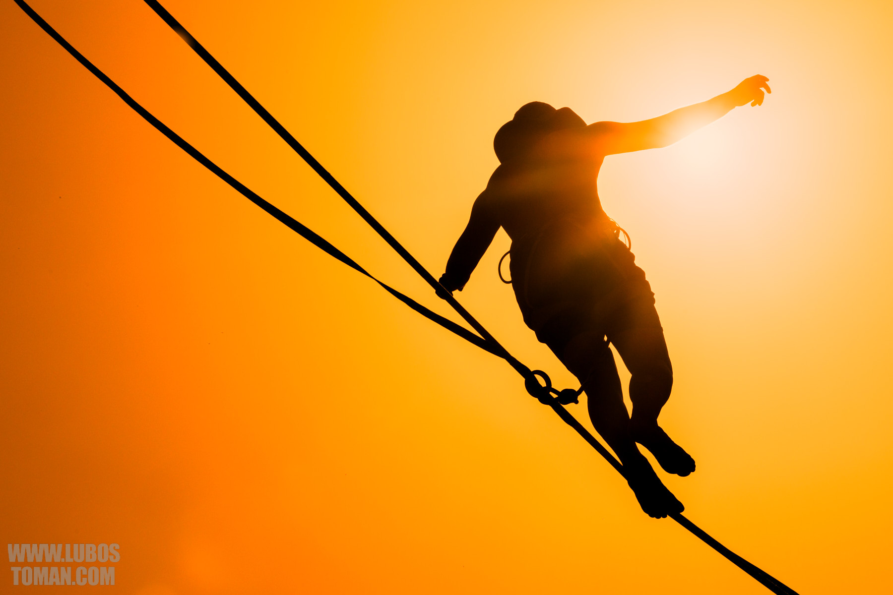 „Provazochodci“ se procházeli na výškových lajnách nad historickým centrem Českého Krumlova v rámci Highline Festu Český Krumlov 2024.