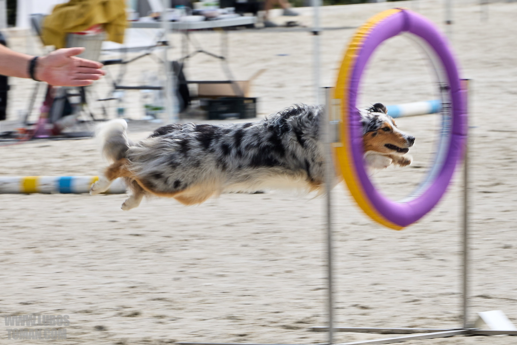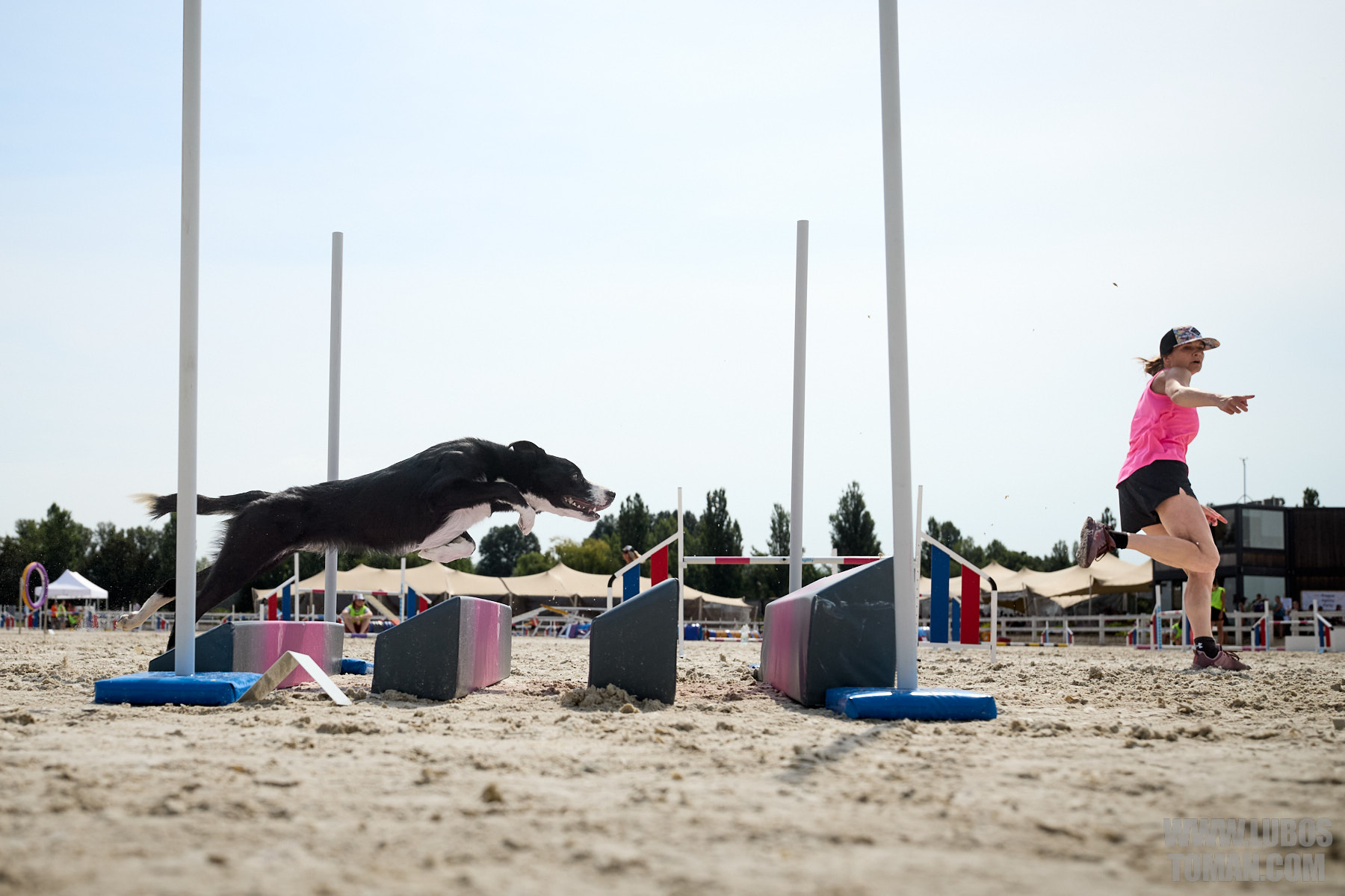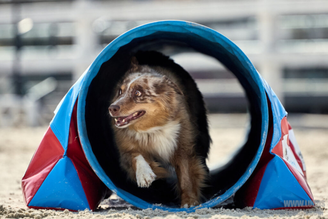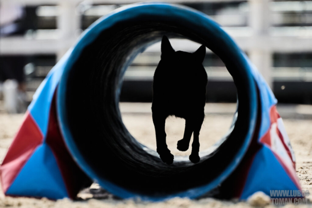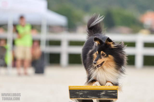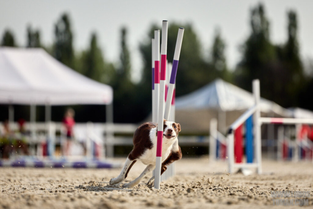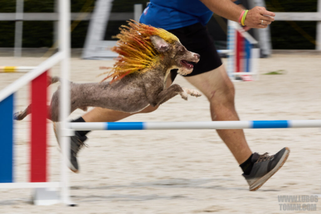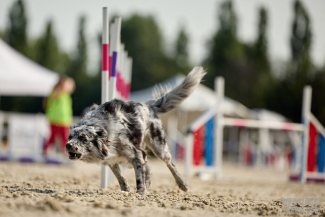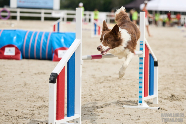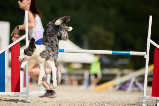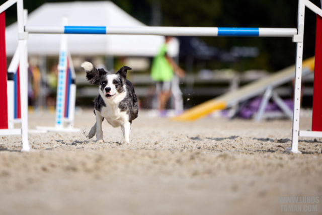 Mezinárodní závod v agility. Psí sport ve kterém psovod navádí psa, který překonává překážkovou trať.