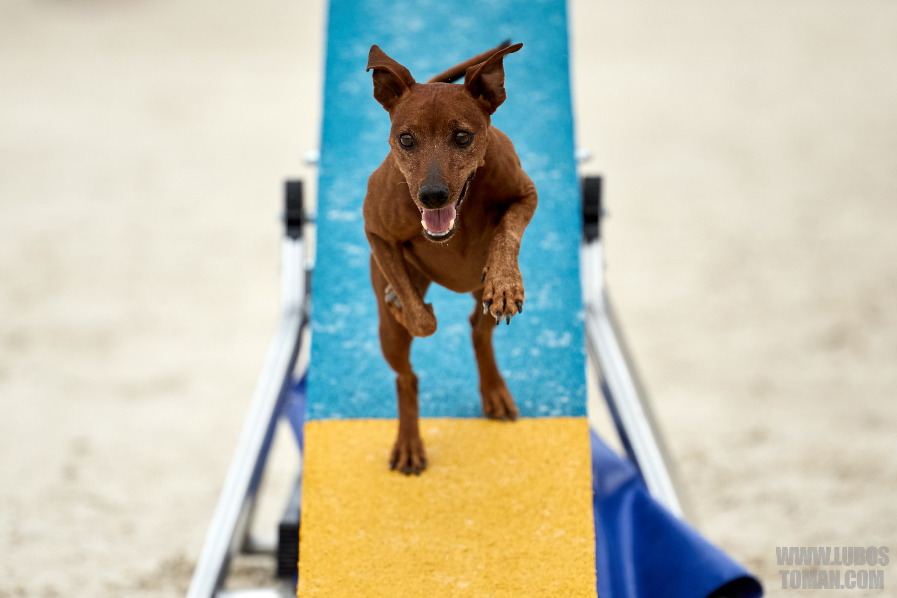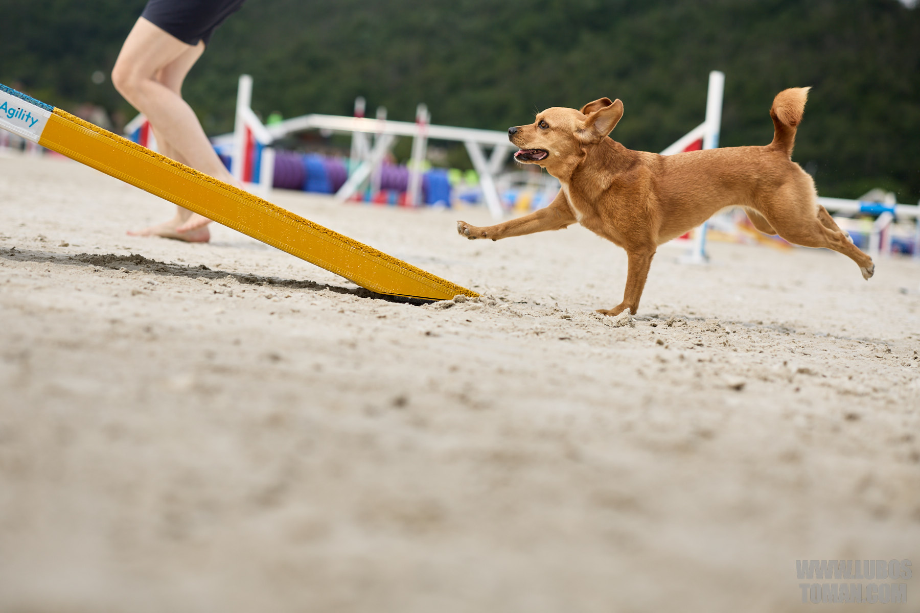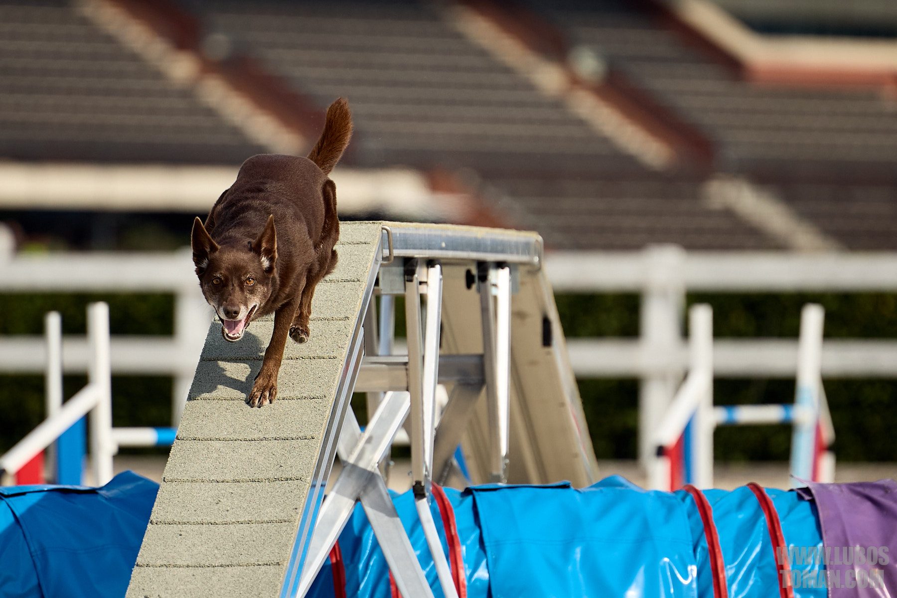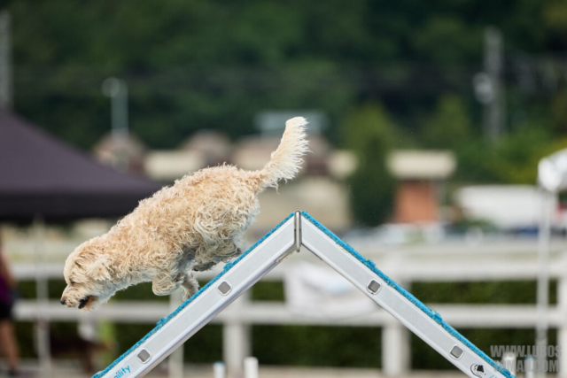 Mezinárodní závod v agility. Psí sport ve kterém psovod navádí psa, který překonává překážkovou trať.